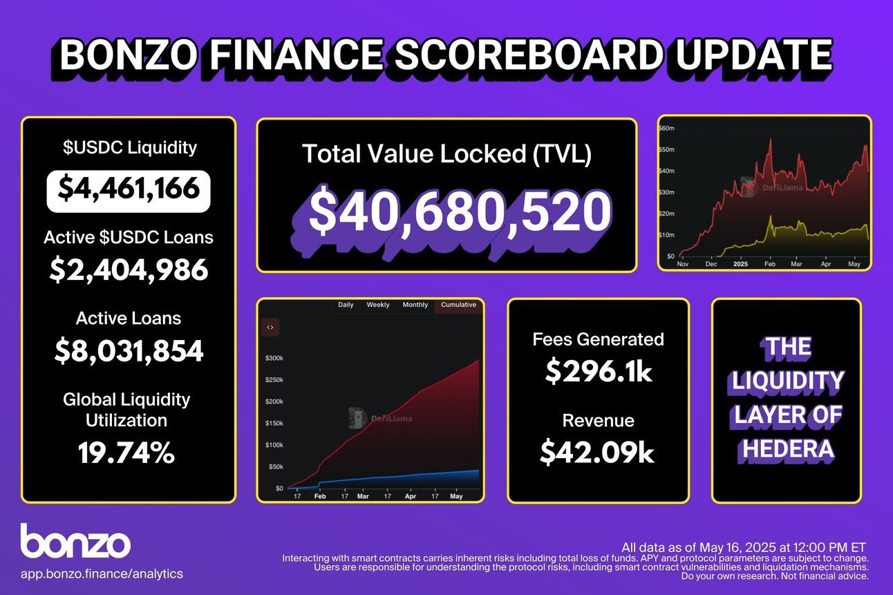 Bonzo Finance was highlighted in Messari’s Q1 2025 State of Hedera report for driving stablecoin adoption through native USDC lending and borrowing.